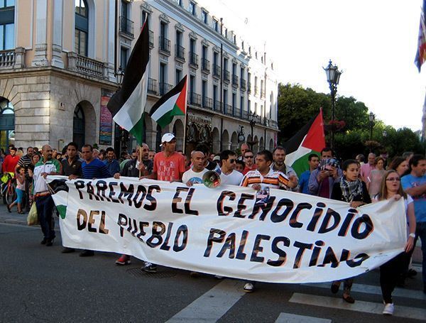 Es el grito más repetido por el centenar de manifestantes que a las 20.00 horas se han citado en la Plaza del Cid para protestar contra los ataques que lleva varios días lanzando Israel sobre la Franja de Gaza y que ya han dejado un balance, hasta ahora, de 170 muertos.