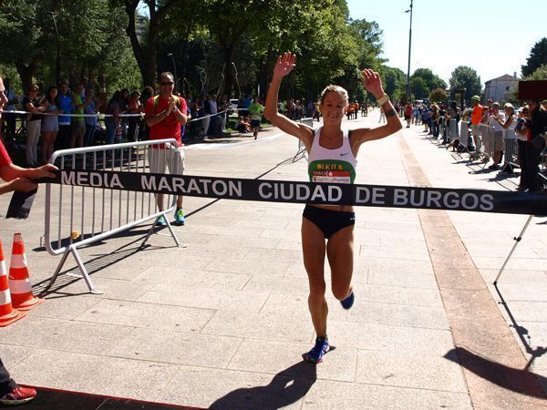 Por su parte, la categoría femenina ha estado dominada de principio a fin por la burgalesa Jimena Martín, que ya desde la primera vuelta al circuito de los puentes del río Arlanzón se ha colocado en cabeza, una posición que ya no abandonaría hasta conseguir cruzar la meta con mucha holgura respecto a Dolores Marco Oyarzábal, que ha entrado en segunda posición (1:23:11). La tercera clasificada ha sido Laura García Mejuto (1:25:29).