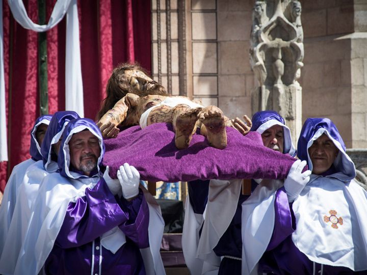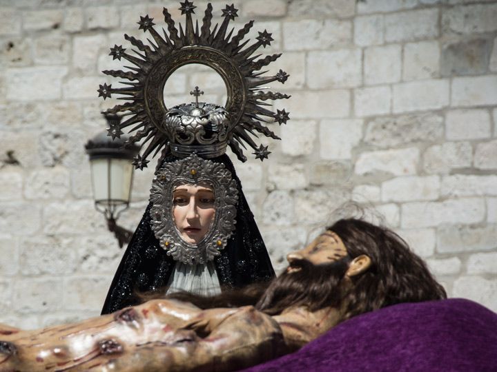 Y el templo del velo se rasgó por la mitad. Cristo se encomendó al Padre, y expiró. El sonido de la carraca de la Catedral de Burgos ha marcado el inicio de la jornada de luto de este Viernes Santo en la capital burgalesa. El Santísimo Cristo de Burgos y la Virgen de la Consolación han protagonizado este mediodía el Acto del Desenclavo de la Cruz, solemne e impresionante momento que recuerda el sacrificio de Jesús, “su acto piadoso y de salvación”, y la resignación de una madre que pierde a su hijo amado “por los pecados del mundo”.