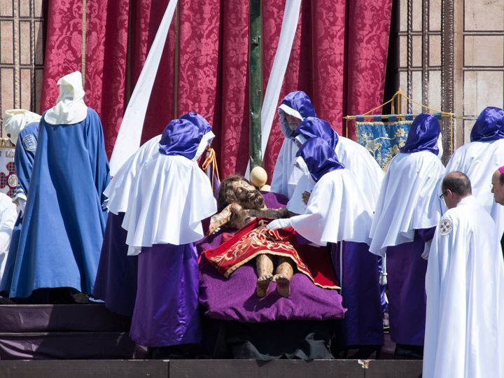 La Cofradía de las Siete Palabras han desenclavado a Jesús, muerto en la cruz, para presentarlo a los pies de la Virgen de la Consolación