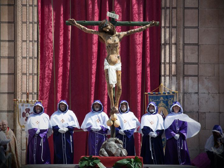 La Plaza de Santa María ha acogido el acto del descendimiento protagonizado por la réplica del Santísimo Cristo de Burgos