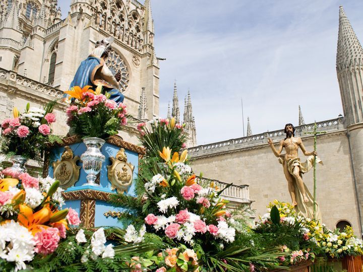La Virgen de la Alegría y el Cristo Resucitado celebraron su esperado encuentro en la Plaza del Rey San Fernando, ante la expectante mirada de cientos de burgaleses