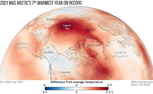 El verano excepcionalmente cálido en la región ártica dio paso a un otoño nada fresco. Así lo hizo ayer público la Oficina Nacional de Administración Oceánica y Atmosférica (NAOO) a través de su informe Arctic Report Card, donde son documentas las numerosas formas en que el cambio climático continúa alterando el paisaje antes congelado. Por ejemplo, a medida que la tundra ártica se calienta y se derrite, las incursiones de arbustos y árboles pequeños han creado un nuevo hábitat para los castores, que crean estanques y humedales que transforman aún más el paisaje.