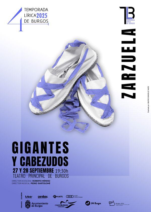 El Teatro Principal acoge el sábado 27 y el domingo 28 de septiembre, a partir de las 19:30 horas, la representación de la zarzuela 'Gigantes y cabezudos', con libreto de Miguel Echegaray y Eizaguirre y música del maestro Manuel Fernández Caballero. El Orfeón Burgalés acompañará al Ballet Antología y a la Joven Orquesta Sinfónica de Burgos en este montaje, con Roberto Méndez como director de escena y Elisa Sanz como coordinadora artística.