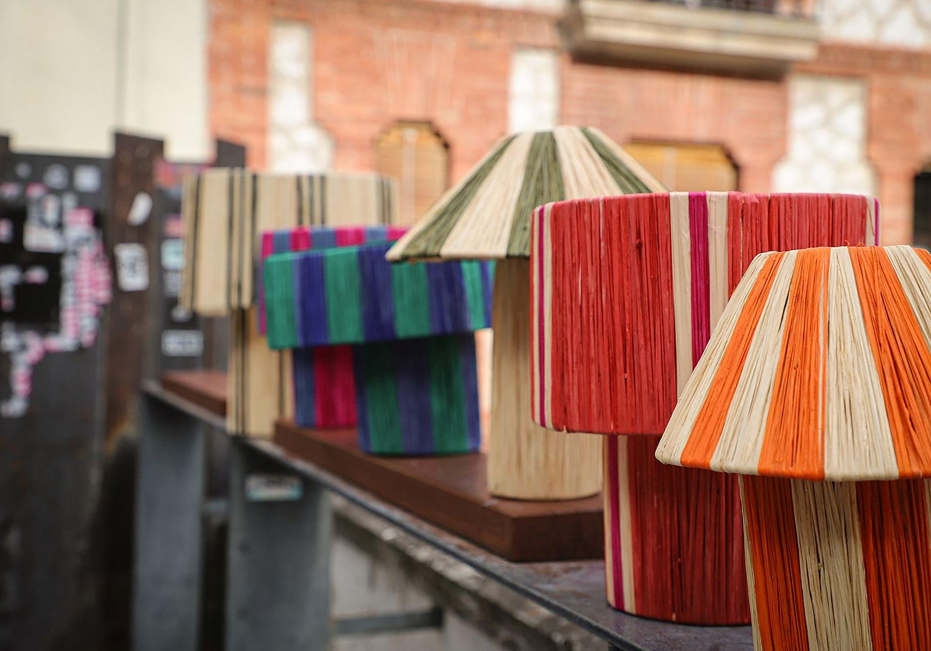 La rafia, material base de sus creaciones, se tiñe con pigmentos naturales y se monta sobre estructuras metálicas sencillas, favoreciendo diseños ligeros y armónicos. Cada lámpara es única y eso es lo que buscaban, «aunque sean del mismo modelo, nunca hay dos iguales. Están hechas a mano por artesanos, y eso se nota», dice Pablo. Esa imperfección sutil, que es belleza, es parte del alma de Brisa.