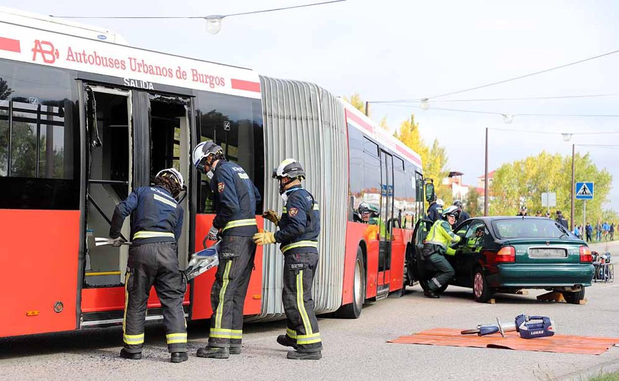 El Bulevar se ha convertido este viernes en el escenario del simulacro de un accidente de bus escolar en el que han participado la Guardia Civil, Policía Nacional, Policía Local, Bomberos de Burgos, Emergencias de SACyL, Protección Civil y Cruz Roja. El objetivo, ensayar y estar preparados para cuando el accidente no sea simulado y la capacidad de reacción de los implicados sea clave para un resultado lo más satisfactorio posible.
