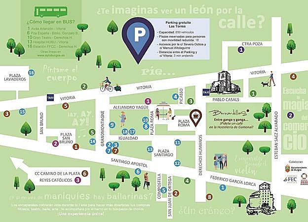 La organización recomienda el uso del bus urbano para llegar a Gamonal a disfrutar de la Feria, o en caso de utilizar vehículo se aconseja estacionar en el Parking de Las Torres.