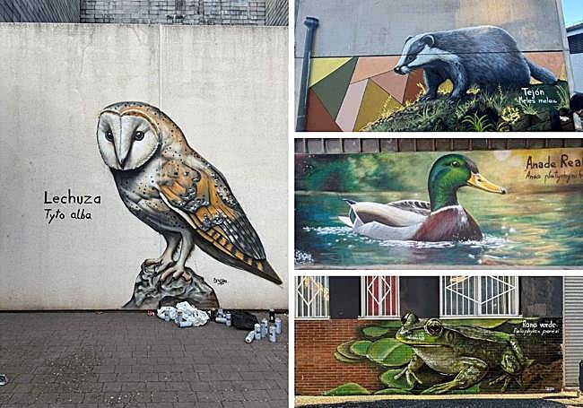 El tejón, desde el colegio Miguel Delibes hasta el centro cívico Vista Alegre, donde se ha pintado; el zorro, desde el colegio San Pablo hasta el centro cívico de Capiscol, donde Huerteco ha realizado el mural. Y la lechuza, desde el colegio Sierra de Atapuerca hasta el centro cívico de Las Huelgas.