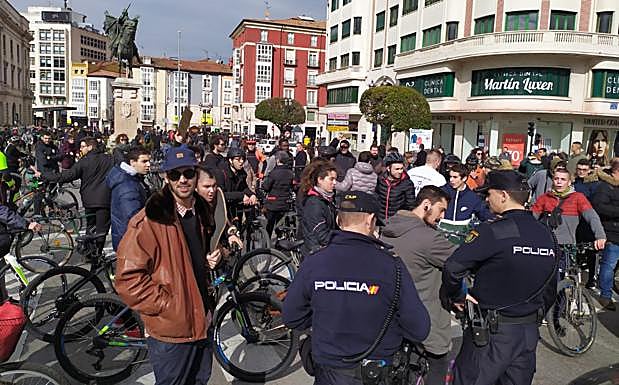 La crítica ha sido unánime. La Plaza Mayor de Burgos ha acogido este mediodía una concentración contra la Ordenanza de Movilidad, que el colectivo ciclista considera «un despropósito», «ilógica» y «restrictiva». En todos los casos exigen contar con espacios reservados para la bicicleta, zonas seguras de paso y convivir con el peatón. Temen por su futuro pues la ordenanza les deja pocas alternativas: el riesgo de la calzada, ir por la acera y que te pongan una multa o dejar la bici en casa. En todos los casos, nada que sirva para incentivar una movilidad sostenible.