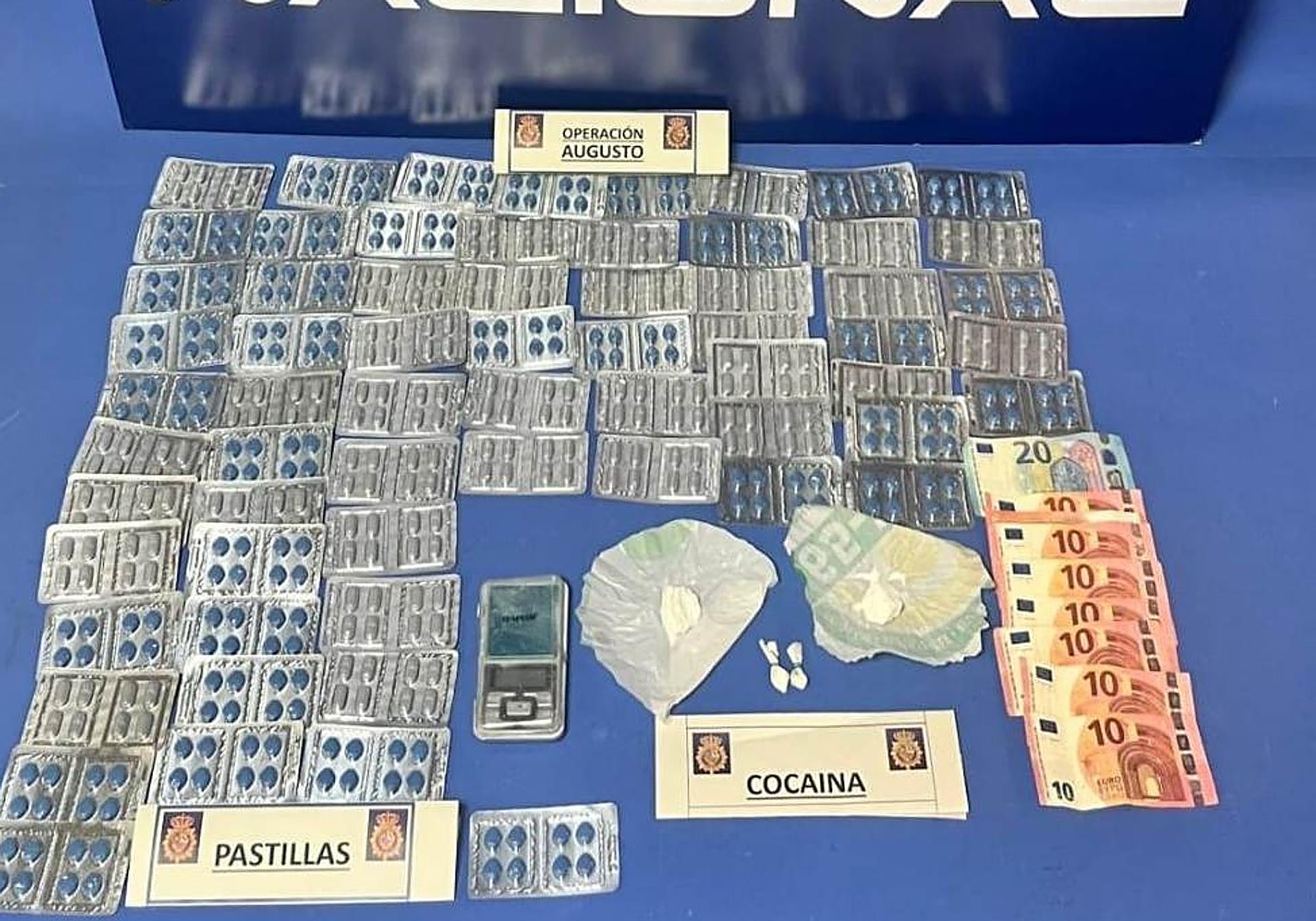 Agentes de la Comisaría Provincial de Burgos han detenido a un varón residente en la ciudad, a quien se atribuye la comisión de un delito de tráfico de drogas, tras incautarle en el registro de dos domicilios y un bar tanto cocaína como un elevado número de pastillas del medicamento sildenafilo, más conocido por su principio activo como viagra.