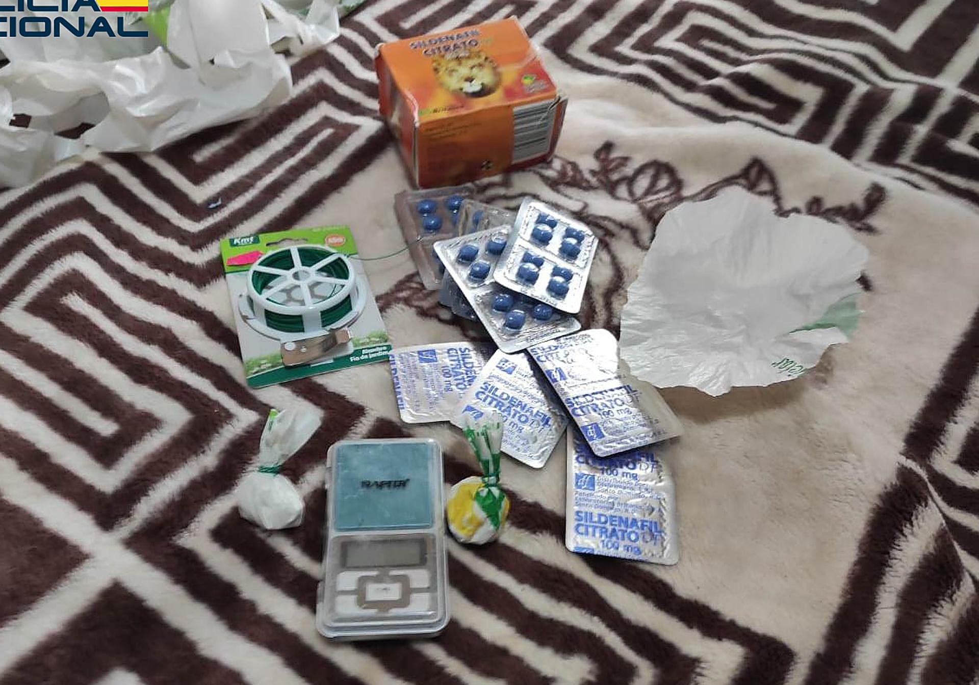 La Policía Nacional intervino 24 gramos de cocaína, 520 pastillas de viagra en dos domicilios y un bar del distrito sur, donde el detenido presuntamente distribuía las sustancias