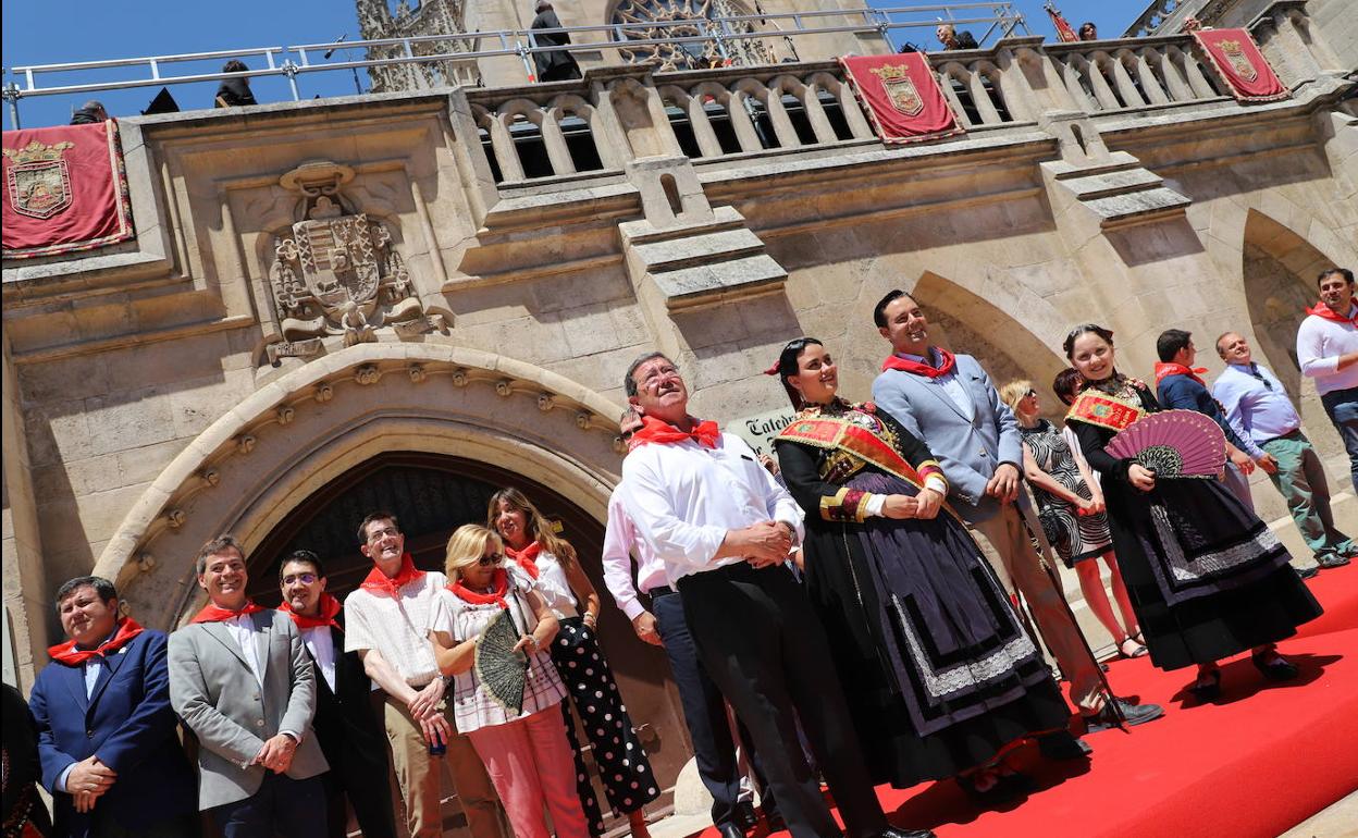 Nunca es mal momento si hablamos de Burgos para entonar el himno a la ciudad. A pesar del calor y el sol abrasador, cientos de burgaleses y curiosos se han concetrado en la Plaza del Rey San Fernando para entonar esas estrofas tan arraigadas: 'Tierra sagrada donde yo nací, suelo bendito donde moriré'...
