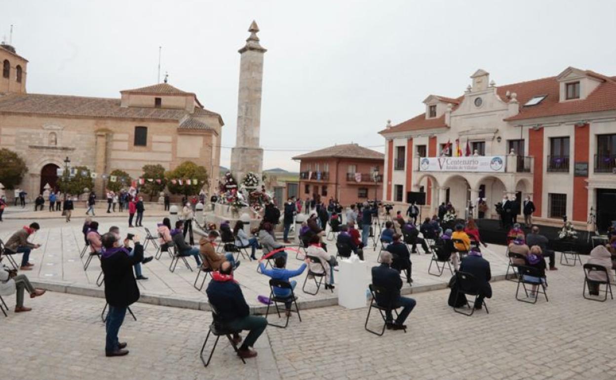 En la Plaza de Villalar huérfana de la algarabía por segundo año, se empieza a calentar un ambiente hasta entonces mustio. Se dejan ver personajes de la historia reciente de la región como el expresidente de las Cortes regionales, Carlos Sánchez-Reyes, que porta un ramo de flores y lo deposita junto al presidente del consejo Económico y Social, Enrique Cabero. O Demetrio Madrid, primer presidente de la Junta de Castilla y León, rodeado de la grey socialista. Acaba la balada y aparecen tres coronas en homenaje a Padilla, Bravo y Maldonado. Junto a ellas forman los alcaldes de Villalar de los últimos 60 años. El actual, Luis Alonso Laguna, que lleva toda la mañana atendiendo a todo el mundo y dando indicaciones y el histórico, Félix Calvo Casasola.