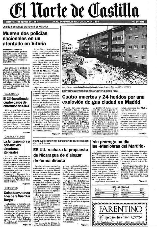 Rafael Mucientes Sanz: coche bomba durante las fiestas de Vitoria. Policía nacional de Mojados (Valladolid). 37 años. Casado y con dos hijos.Llevaba 16 años en el cuerpo.Cinco de ellos en Vitoria.