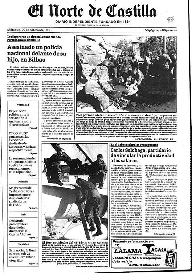 Julio César Sánchez Rodríguez: Lo mataron con los hijos agarrados de la mano. Policía nacional. De Salamanca. Tenía 31 años. Llevaba ocho en el País Vasco. Trabajaba en las oficinas del DNI de Bilbao.
