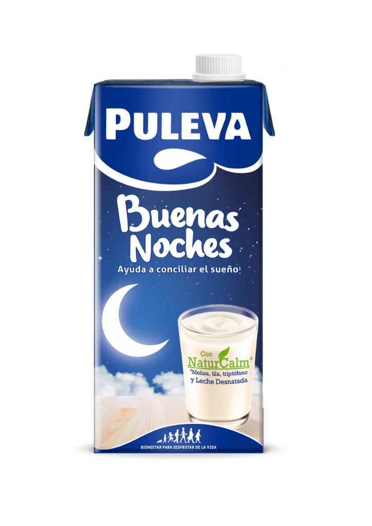 Conscientes de que en España el consumo de leche es de 3.000 millones de litros, de los que más de 210 millones de litros se consumen entre la cena y después de cenar, como apunta un estudio de Kantar de 2022, Puleva, marca comprometida con el bienestar de toda la familia, acaba de lanzar Puleva Buenas Noches, una leche desnatada y sin lactosa enriquecida con NaturCalm® que ayuda a conciliar el sueño de una manera eficaz. Su fórmula contiene extracto de tila, para ayudar a la relajación; extracto de melisa, para inducir al sueño; y triptófano, un aminoácido presente de forma natural en la leche y precursor de la melatonina.