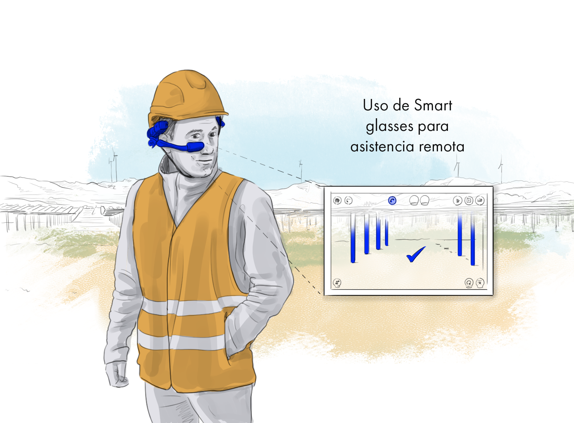 La tecnología que Endesa emplea durante la construcción de Dulcinea también empuja en esta dirección. “Utilizamos unas gafas inteligentes que te permiten mostrar lo que tú estás viendo a un grupo de personas en remoto e incluso contraponer un plano para ver lo proyectado sobre lo que hay en la realidad”, indica el experto. Este tipo de gafas inteligentes logran evitar muchos desplazamientos, por ejemplo, para recibir asistencia técnica o incluso a la hora de completar una auditoría de seguridad, ya que se pueden completar en remoto.