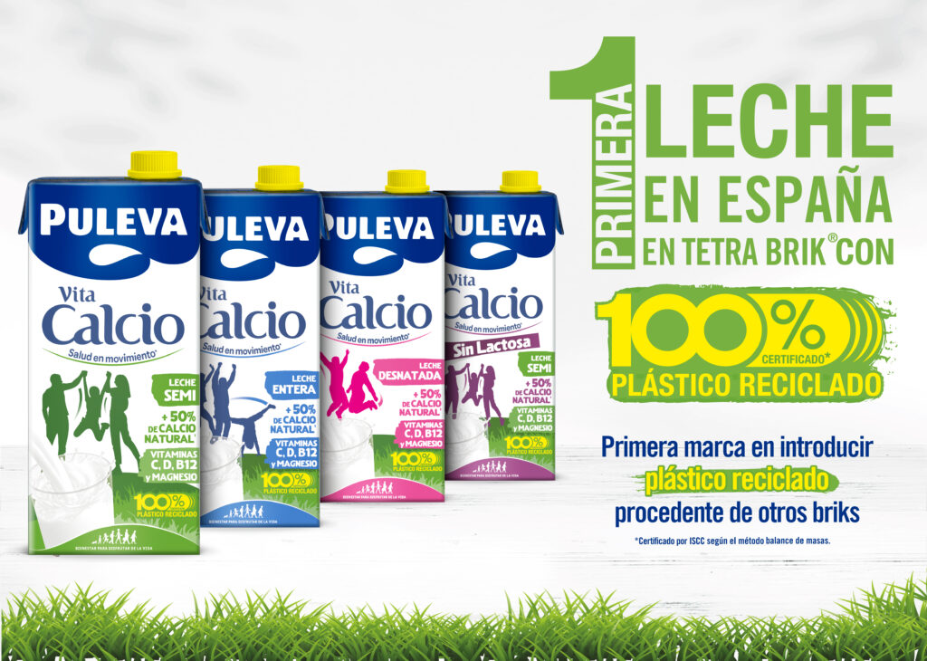 Puleva Vita Calcio, se convierte así, en la primera marca de leche en España que utiliza un Tetra Brik® con 100% plástico reciclado certificado, y además, en la primera que utiliza plástico reciclado procedente de otros briks.