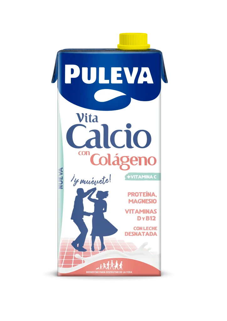 Bajo esta premisa, Puleva Vita Calcio con Colágeno es la primera bebida láctea que incorpora el colágeno en su fórmula, con el objetivo de apoyar la salud ósea, muscular y articular. Combina en una sola leche desnatada y ligera colágeno y vitamina C para reforzar las articulaciones; calcio, proteínas y magnesio para cuidar huesos y músculos; y vitamina B12, que ayuda a reducir la fatiga y mejorar la vitalidad.