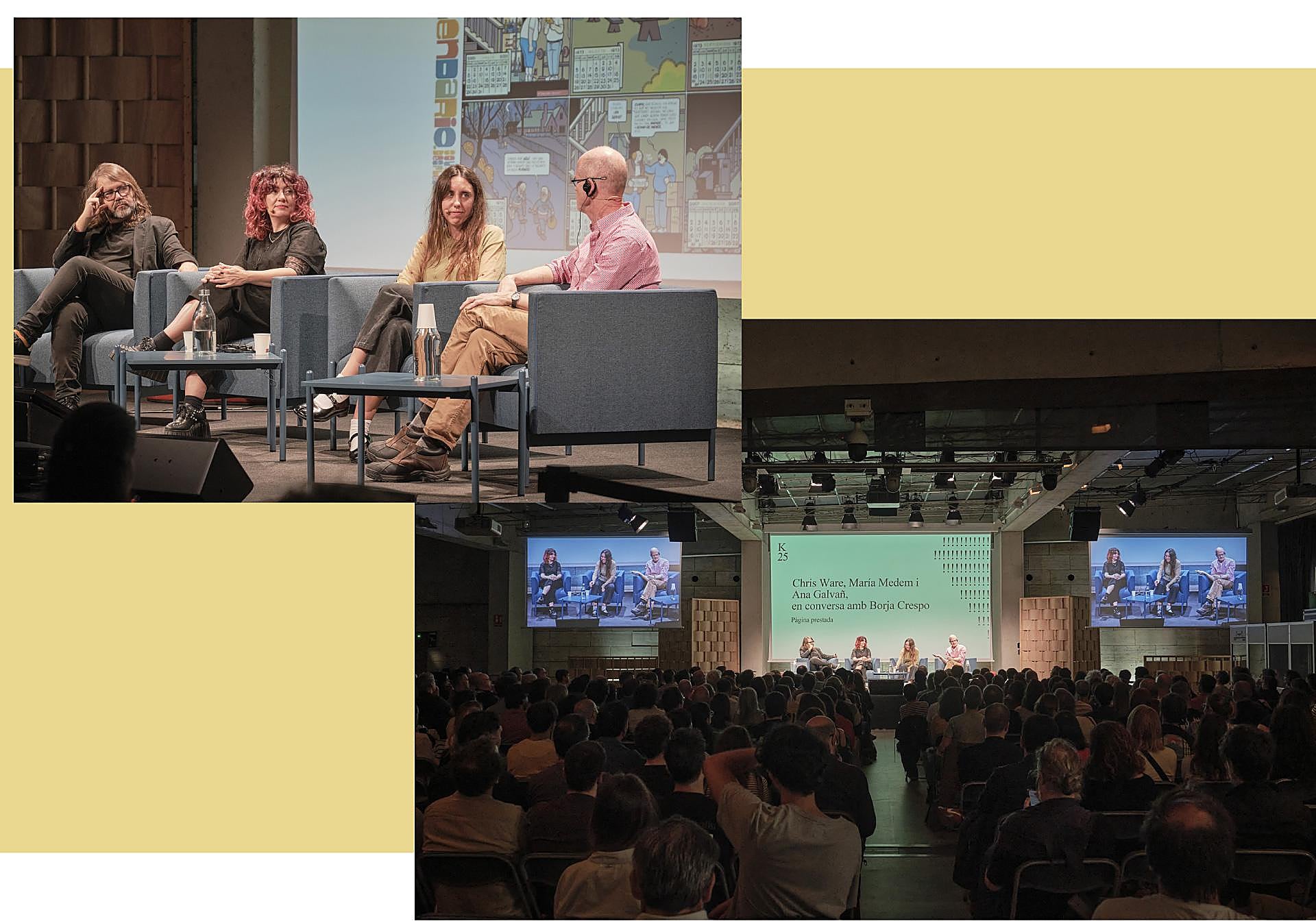 Hablando de celebraciones, fue una experiencia mayúscula, MA-YÚS-CU-LA, la reciente entrega de Kosmópolis, que incendió el CCCB de Barcelona del 22 al 26 del pasado octubre, una experiencia inconmensurable. Público a rebosar, generoso y participativo. Mucha gente interesada en los encuentros, muy bien organizado todo (con traducción humana simultánea en varios idiomas, lenguaje de signos y realización audiovisual impecable). Todo se grabó en vídeo y algunas charlas ya están colgadas en la web de este ineludible festival de literatura amplificada, con el cual ha colaborado Comic Barcelona. Hay que hacer más pedagogía sobre el Salón, porque participa a lo largo del año en muchas iniciativas, cada vez más. Pude volver a intercambiar unas palabras con Chris Ware y tuvimos la oportunidad de conocer de cerca a Art Spiegelman, Charles Burns y Keum Suk Gendry-Kim, entre otros nombres fundamentales de la historieta. Moderé una mesa con el propio Ware, María Medem y Ana Galvañ. Ya está disponible online y es una 'master class' sobre cómic más que recomendable. Un lujazo.