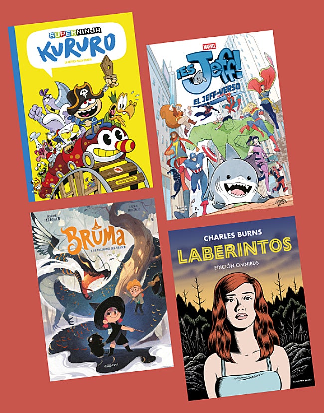 '¡Es Jeff!', de Kelly Thompson y Gurihiru, publicado por Panini, es un delirio más que divertido para todos los públicos donde puedes ver al peculiar tiburón andante codeándose con algunos iconos esenciales de Marvel. Y qué bonito es 'Bruma. El despertar del dragón' (Astiberri), para aprendices de brujería, grandes y pequeños. Cambiando de tercio, ya que antes hemos citado a Charles Burns, a propósito de su visita a Kosmópolis en Barcelona, cabe destacar la llegada estos días a las librerías de un tomo recopilatorio brutal, 'Laberintos', de la mano de Reservoir Books. Una buena oportunidad para degustar al completo, del tirón, la última propuesta del creador de 'Agujero negro', cuyas inquietantes viñetas siempre arrebatan.