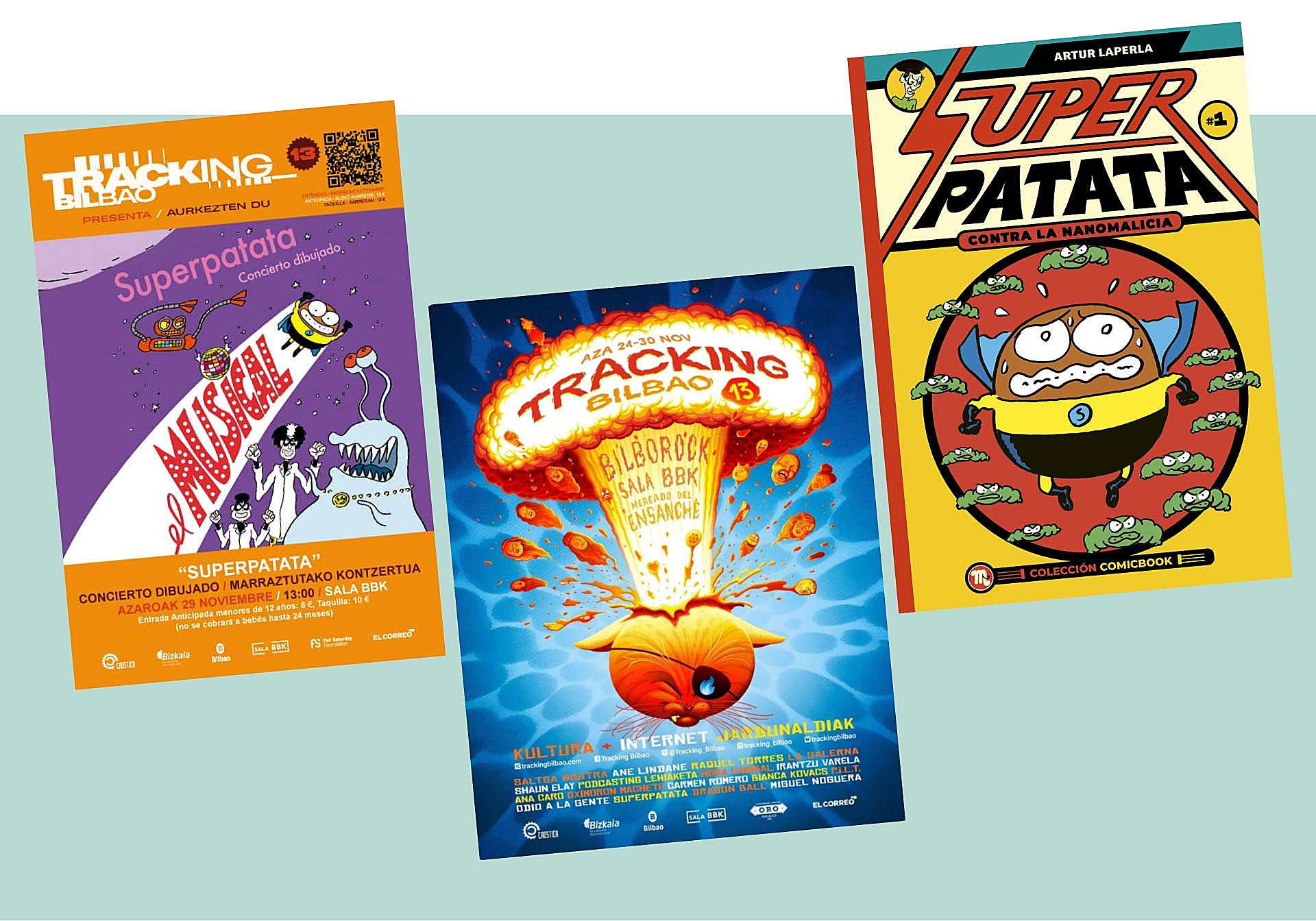 Estos días me encuentro inmerso en la organización de la próxima edición de Tracking Bilbao, que tendrá lugar del 24 al 30 de noviembre, en apenas unos días. El cartel de este año, atención, es obra de Juanjo Cuerda, un auténtico titán que se ha atrevido a «caricaturizarme» en el póster. Sus portadas para la revista 'El Jueves' son monumentales, de ahí surgió la idea de endosarle el reto, con una única pista: los cromos de La Pandilla Basura. El resultado es pura ambrosía. Por supuesto, el autor de 'El destripador de películas' nos visitará durante el magno evento bilbotarra, en el cual también tendrá lugar el estreno universal, ojo al dato, del show de Superpatata, el personaje superventas creado por el inefable Artur Laperla. Un espectáculo de música y dibujo en directo para toda la familia que promete arrasar entre gente menuda, menuda gente (será el sábado 29 de noviembre por la mañana).
