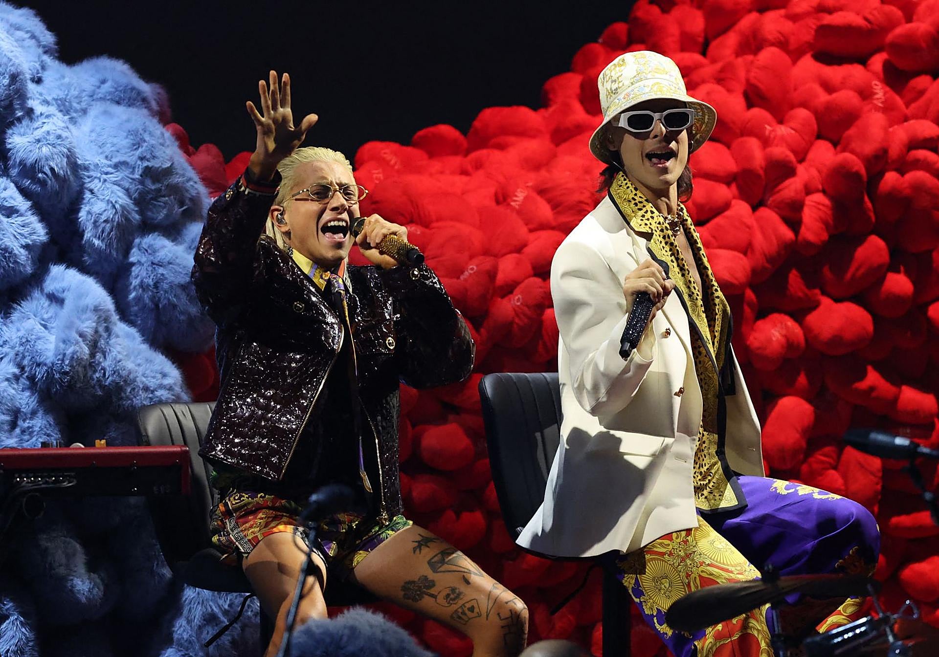 Solo un dúo tan atípico, ecléctico, arriesgado y disfrutón como el que conforman Ca7riel y Paco Amoroso podía rivalizar en número de galardones con el conejo malo, si bien los de estos dos argentinos eran premios menores, pues los recibieron durante la pregala -los Grammy latinos cuentan con sesenta galardones y en la pregala se entregan 51-. A saber, mejor vídeo musical versión corta y versión larga, mejor álbum de música alternativa por 'Papota', mejor canción alternativa por '#tetas' y mejor canción pop por 'El día del amigo'. Su actuación en Las Vegas fue una de las más llamativas y divertidas, mezclando canciones como 'El impostor', '#Tetas', 'La que puede, puede' y 'El día del amigo' mientras cuatro muchachos fornidos cosían cojines que lanzaban al público. «¡Esta noche los Grammy son nuestros!», gritaba un exultante Paco Amoroso desde el escenario, justo ahora que ha pasado un año desde aquel Tiny Desk que les lanzó a la fama y que les ha llevado a pisar festivales como el Coachella. El beso que se dieron en la sala de prensa posando con los gramófonos es ya historia de la ceremonia.