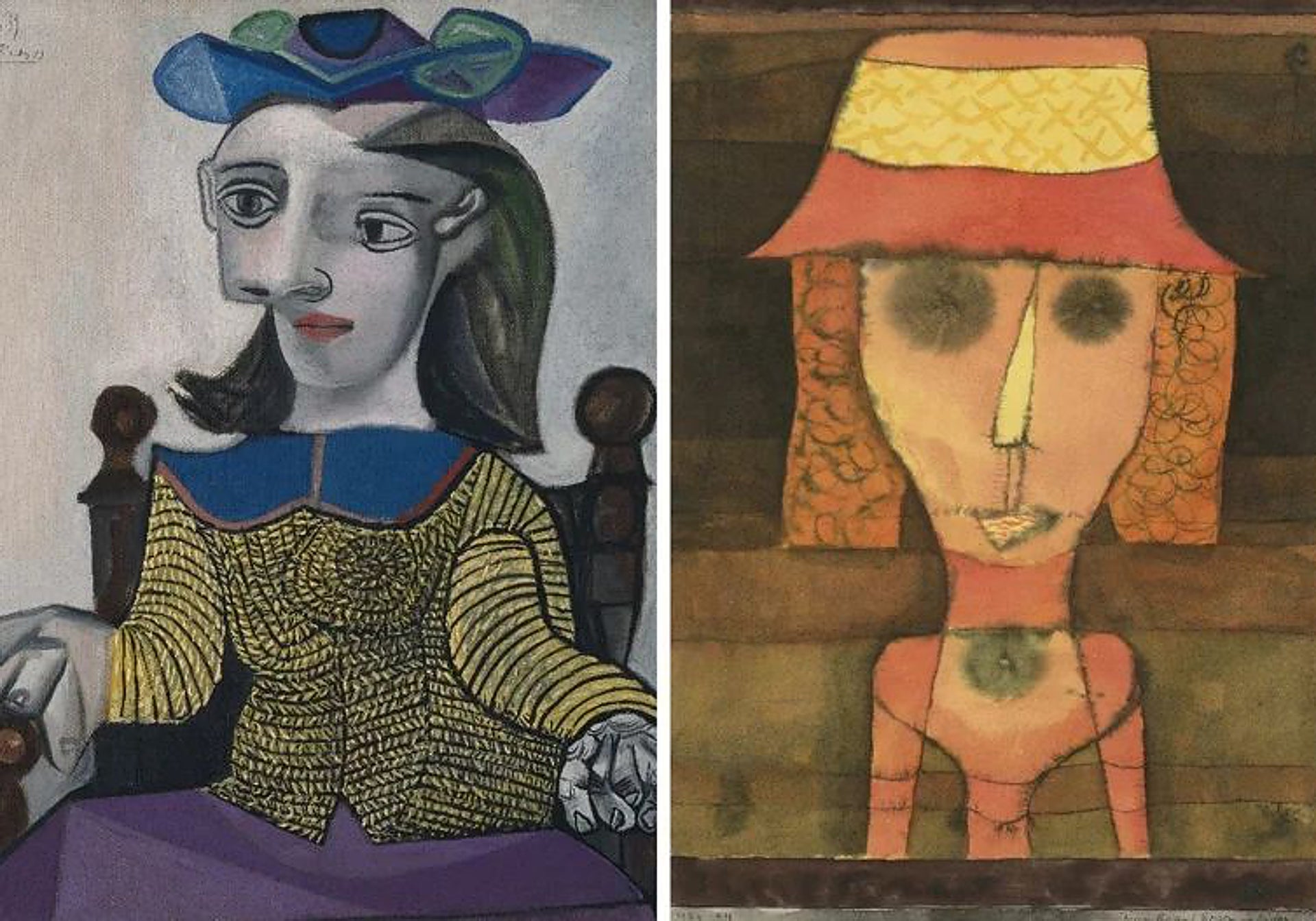 'El jersey amarillo', 1939, de Picasso y 'La señora R, viajando por el sur', 1924, de Klee.