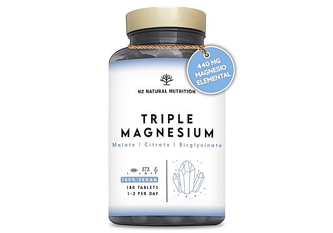 Con una combinación de citrato, bisglicinato y malato, este suplemento de N2 Natural Nutrition proporciona 440 mg de magnesio elemental por día. Su fórmula es vegana y está diseñada para ofrecer alta biodisponibilidad. El producto se presenta en un envase biodegradable y ofrece un suministro para tres meses.