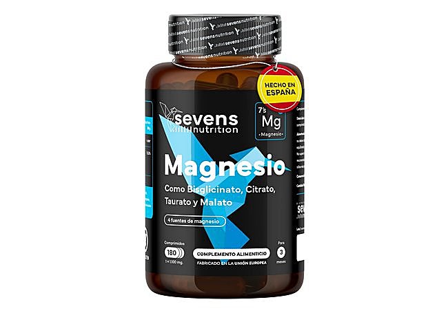 Magnesio Complex 4 en 1 de SEVENS NUTRITION combina citrato, bisglicinato, taurato y malato de magnesio en comprimidos de alta biodisponibilidad. El citrato y el bisglicinato se absorben fácilmente, el taurato apoya la función cardiovascular y el malato ayuda en la producción de energía. Este producto es libre de gluten y lactosa.
