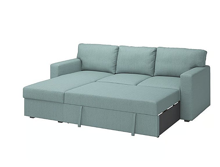 Este modelo es un sofá de 3 plazas con chaise longue que tiene dos cosas que quizás te interesen: una cama con un largo de 200 cm, una funda antimanchas y espacio de almacenaje en la parte inferior. Y si esto es poco, tiene también una garantía de 10 años. Su precio es de 699€.