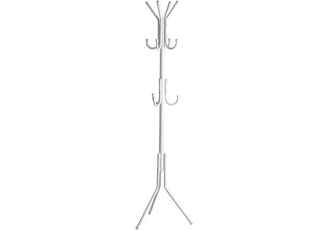 Con estructura metálica ligera y base triangular, este perchero de pie blanco presenta un diseño moderno que optimiza el espacio. Los once ganchos distribuidos en diferentes alturas facilitan la organización de prendas y accesorios. El acabado resistente y los detalles antideslizantes en los ganchos garantizan durabilidad y protección para la ropa, combinando funcionalidad y estética en cualquier ambiente.