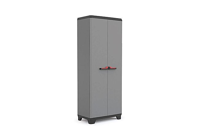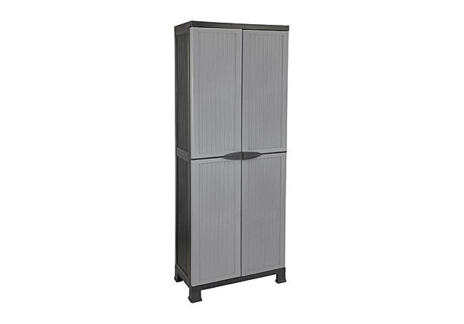Gracias a su estructura vertical y diseño de doble puerta, el armario de resina Terry Jline 368 es ideal para organizar espacios exteriores. Sus dimensiones de 68x37,5x163,5 cm y cuatro estantes internos permiten almacenar herramientas, productos de limpieza o accesorios de jardín de forma ordenada. El acabado en gris y negro aporta un toque moderno y discreto.