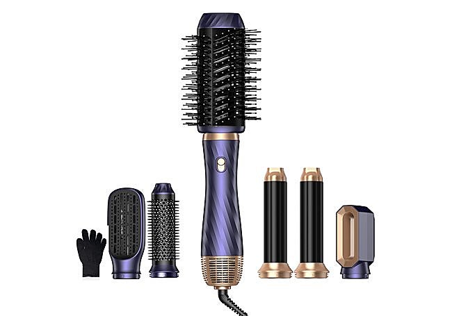 El cepillo secador de pelo Atopskins cuenta con seis accesorios intercambiables que permiten funciones de secado, alisado, rizado y volumen. Incluye un generador de iones negativos y un control de temperatura ajustable para adaptar el peinado a diferentes necesidades. Este diseño versátil facilita el cuidado diario del cabello.