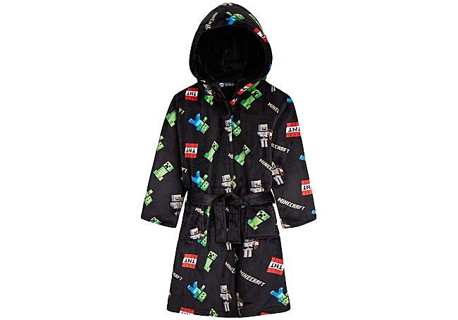 Con un diseño inspirado en el universo Minecraft, este albornoz infantil destaca por su felpa suave y capucha con gráficos pixelados oficiales. Incorpora cinturón y bolsillos delanteros, ofreciendo comodidad y estilo auténtico para pequeños fans. La composición en poliéster facilita el mantenimiento y garantiza una prenda acogedora y resistente tras cada lavado.