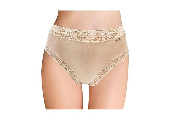 La cintura y los camales llevan una puntilla elástica que aporta sujeción sin apretar, evitando marcas bajo la ropa.