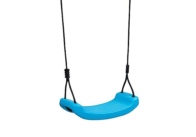 Si buscas un columpio resistente y fácil de adaptar, este modelo de Hudora ofrece un asiento de plástico azul con cuerdas ajustables en altura entre 117 y 190 cm.
