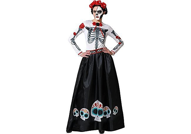 DISFRAZ DE ESQUELETO CATRINA MUJER ATOSA BLANCO Y NEGRO