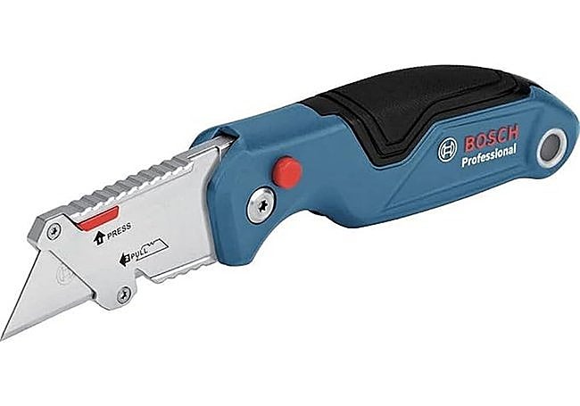 Gracias a su diseño compacto, el cúter plegable de Bosch destaca por su estructura robusta y ligera, fabricada en acero inoxidable y nailon con fibra de vidrio.