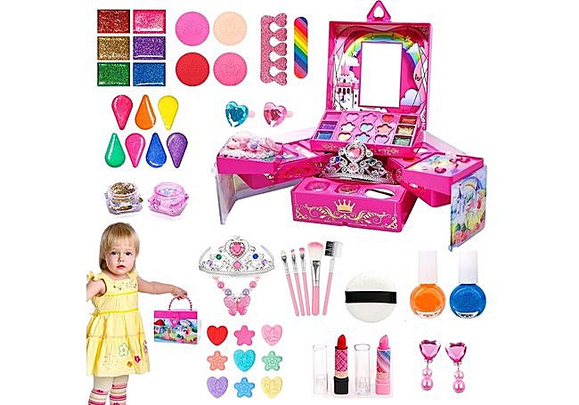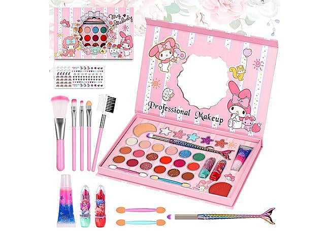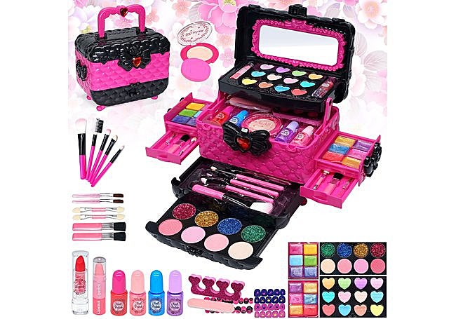 Con 57 piezas, este set de Mrabbitoo incluye un estuche compacto y resistente con compartimentos para organizar los cosméticos y un espejo integrado. Las fórmulas son lavables y no tóxicas, formuladas para pieles delicadas. El diseño facilita el almacenamiento y el transporte del kit.