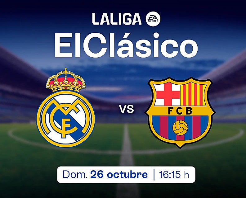 El primer clásico de la temporada 2025/26 se juega este domingo 26 de octubre. El Real Madrid recibe al Fútbol Club Barcelona en el Bernabéu a partir de las 16:15, hora peninsular española. Se trata de uno de los 3 eventos deportivos más seguidos del mundo, que ahora puedes ver a mitad de precio gracias a la última promo de DAZN.