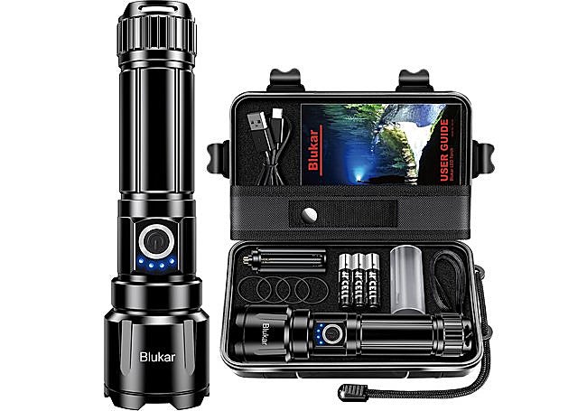 Con cuerpo robusto de aluminio y certificación IP67, la linterna LED Blukar proporciona hasta 500.000 lúmenes, permitiendo iluminar grandes espacios con facilidad. Sus cinco modos de luz y enfoque ajustable ofrecen versatilidad, mientras que la batería recargable USB-C y el indicador de carga aportan comodidad y control en un formato compacto y resistente.