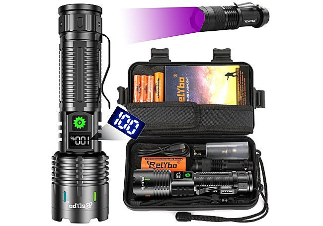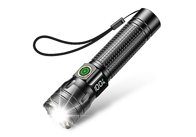 Con un chip LED XHM88 de 30W, la linterna Relybo ofrece hasta 1.000.000 lúmenes y enfoque ajustable para iluminar áreas extensas o focalizar a larga distancia. Su pantalla LCD digital muestra el nivel de batería en tiempo real, mientras que el cuerpo de aluminio aeronáutico y la carga USB-C aportan durabilidad y practicidad en un formato compacto.
