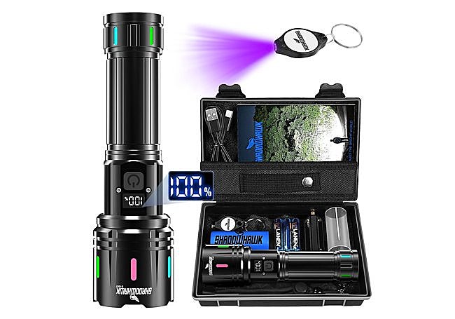 Con tecnología XHM90.2, la linterna LED Shadowhawk S1007 destaca por su haz de un millón de lúmenes y pantalla LCD digital para controlar la batería. Su cuerpo de aluminio aeronáutico con resistencia IP67 garantiza durabilidad, mientras que los cinco modos de luz y la función UV para detección añaden versatilidad y precisión en iluminación avanzada.