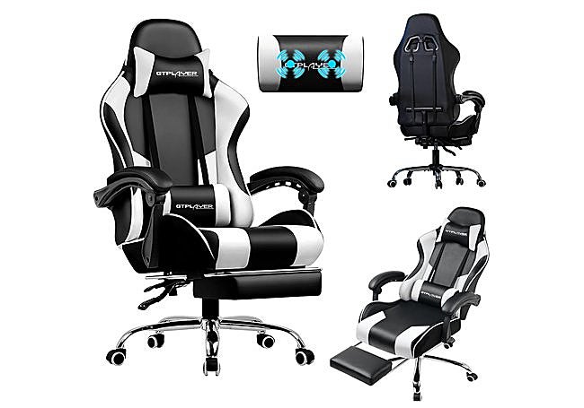 LUCKRACER ofrece una opción robusta en color blanco con masaje lumbar USB. Su respaldo ajustable hasta 135° y el reposapiés retráctil permiten alternar fácilmente entre trabajo y descanso, adaptándose a diferentes posturas y necesidades.