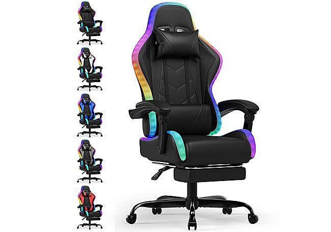 El modelo de Devoko destaca por su sistema de iluminación LED RGB con más de 366 modos, creando un ambiente inmersivo para jugar o trabajar. Su respaldo ergonómico ajustable y el masajeador lumbar incorporado ofrecen un apoyo extra durante largas jornadas frente al ordenador.