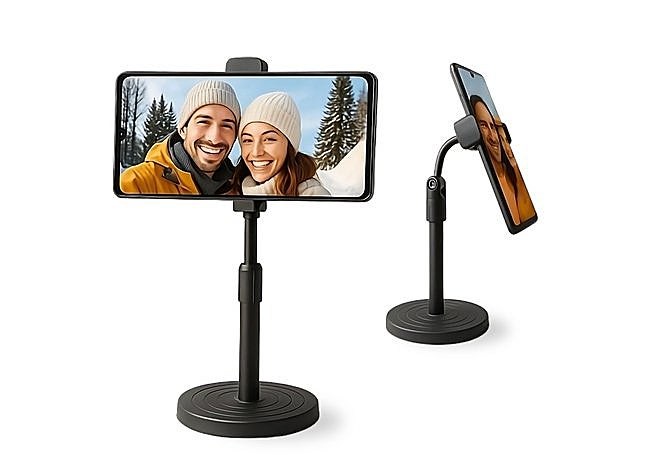 ¿Te gustaría ajustar la altura y el ángulo de tu móvil mientras trabajas o disfrutas de vídeos? El soporte de escritorio Hivexagon, con base redonda y estructura robusta, permite regular la altura entre 36 y 52 cm y girar el dispositivo 360°. Su sistema de fijación universal y barra extensible ofrecen flexibilidad para distintos usos, como grabaciones o llamadas.