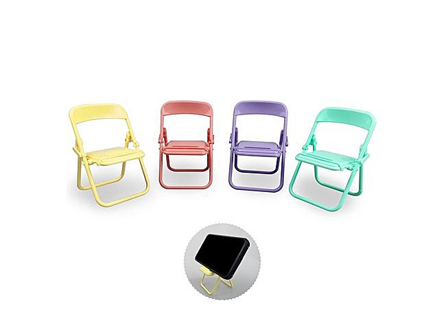 Este soporte plegable para móvil de FuninCrea sorprende con su diseño en forma de silla y colores vivos. Fabricado en plástico resistente, su base triangular proporciona una estabilidad notable para el uso diario, permitiendo colocar el teléfono en posición horizontal de forma segura.