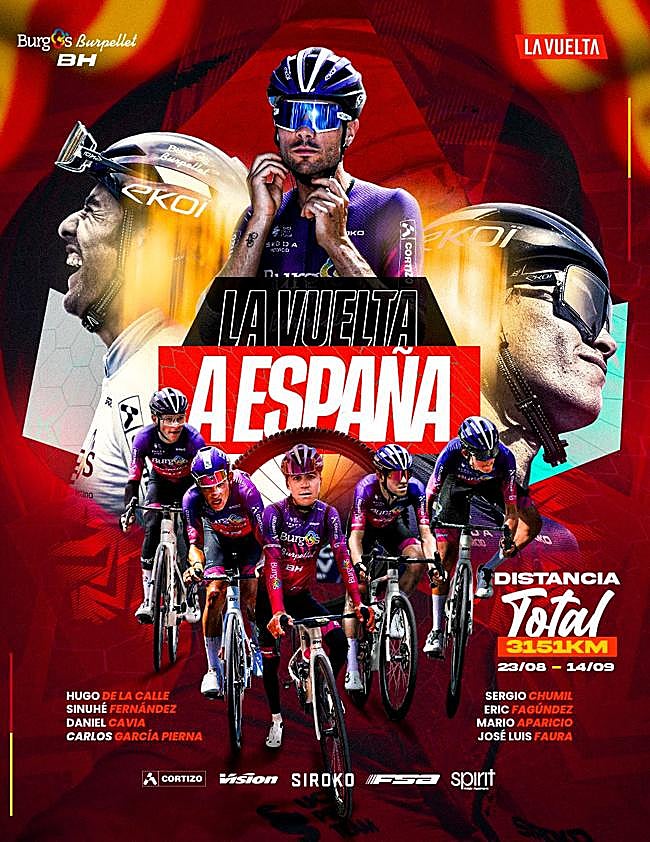 Llega el momento culminante de la temporada 2025 para el Burgos Burpellet BH. El esperado regreso a la Vuelta a España por séptima vez en su historia y tras un año de ausencia. Una de las carreras ciclistas más importantes del mundo que recorrerá nuestro país durante tres semanas, arrancando por primera vez desde Italia, en la región del Piamonte. El equipo que dirige Julio Andrés Izquierdo peleará con humildad, pero con mucha ambición para estar a la altura de una cita tan prestigiosa. Buscando sorprender desde las escapadas, peleando en los finales de etapa y soñando con el triunfo que ya lograron en 2019. Ocho ciclistas que se han preparado a la perfección en los últimos meses para darlo todo en las 21 etapas de La Vuelta, del 23 de agosto al 15 de septiembre.