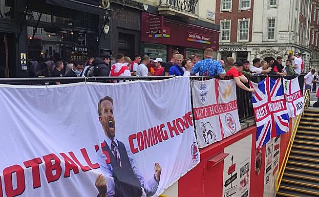Como en cada uno de los seis de siete partidos que la selección de Gareth Southgate ha disputado esta Eurocopa en Wembley, los jóvenes, y no tan jóvenes, se citaron en los puntos neurálgicos de la capital. Las zonas de seguidores levantadas por la UEFA en Trafalgar Square y junto al Puente de la Torre de Londres, eran las más concurridas.